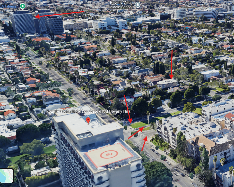 Through careful analysis of architectural features, balcony types, road layouts, and temporal correlations with her Instagram posts, we were able to narrow down the exact location of Millie Bobby Brown’s photos. By cross-referencing visual clues with satellite imagery and 3D building models, it is highly likely that the images were taken from an open guard-rail balcony on the third room from the right at the Four Seasons Hotel Los Angeles at Beverly Hills.