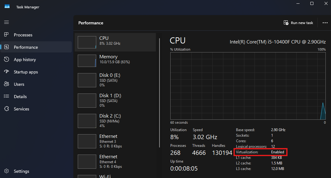 Tip: Virtualization settings are usually found under Advanced, CPU Configuration, or System Configuration in the BIOS/UEFI. Save changes and restart your computer after enabling it.