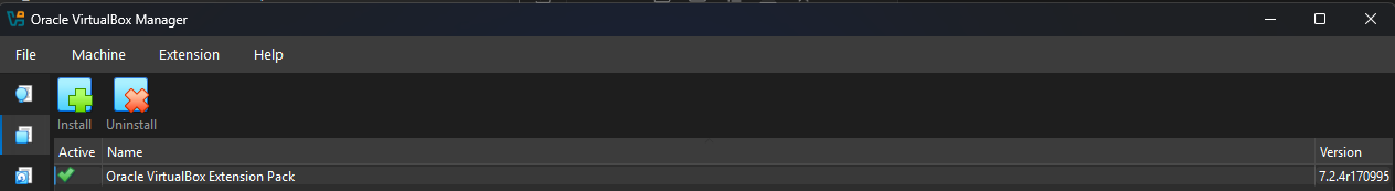 If the Active column shows a ✅, the Extension Pack is installed successfully.