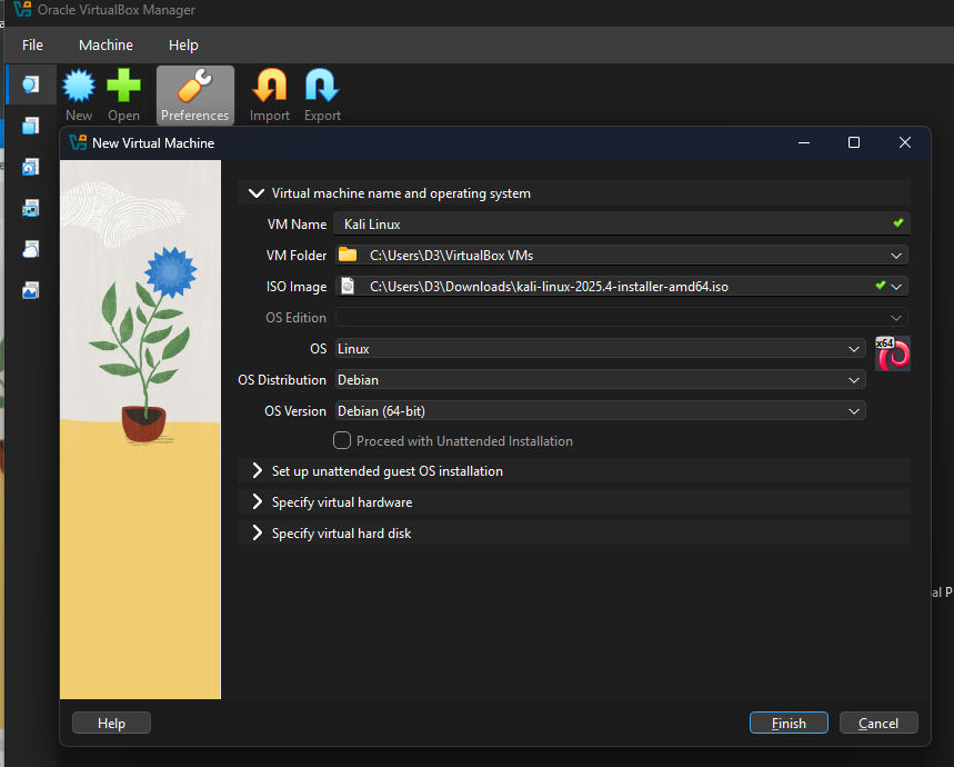 Kali Linux is a powerful Linux distribution designed for cybersecurity and ethical hacking. Installing it on VirtualBox allows you to run Kali Linux in a virtual environment on your Windows 11 computer without affecting your main operating system. This setup is ideal for learning, testing security tools, and practicing penetration testing safely.