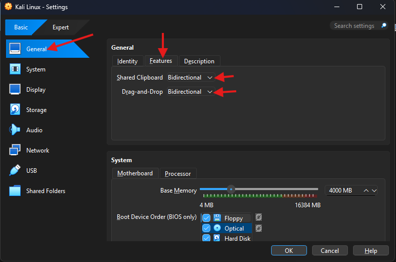 - Set both Shared Clipboard and Drag-and-Drop to Bi-Directional